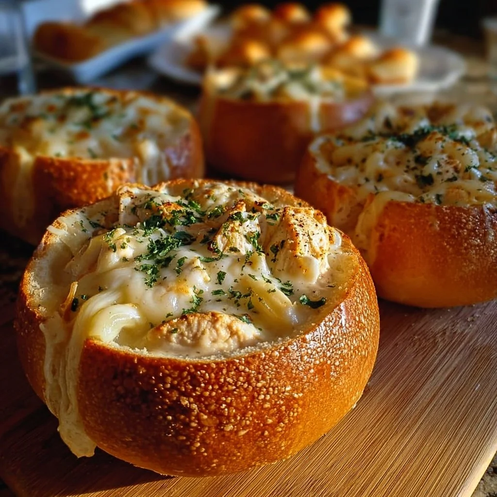 Chicken Alfredo Garlic Bread Bowls are a delightful twist on classic comfort food. Combining tender chicken, creamy Alfredo sauce, and hearty pasta nestled in crunchy bread bowls, this dish is not only delicious but visually impressive too. The golden, toasted bread filled with cheesy goodness makes it perfect for family dinners, game day gatherings, or even cozy nights in.