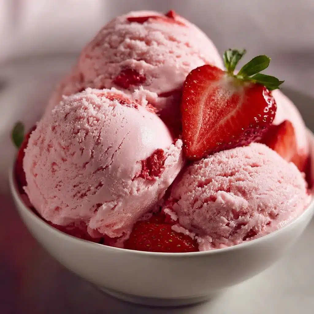 - Presentation: Scoop into bowls and top with fresh strawberry slices.